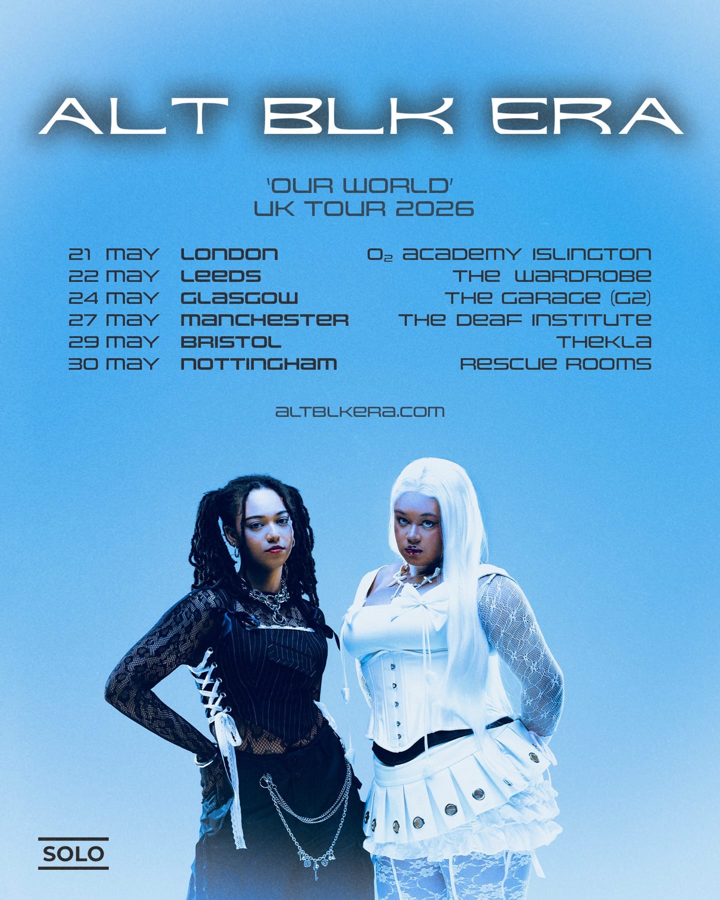ALT BLK ERA have just announced their new EP, Our World, along with a headlining UK tour. Led by sisters Nyrobi and Chaya Becket-Messam, the Nottingham-based group began in 2020 during the COVID pandemic. In 2022, the group released their first original track, "Slowly Die: Solar," followed by their debut EP, Freak Show, the following year. Since then, they've featured on Delilah Bon's single "Witch," been hand-picked to open for Tom Morello, played Glastonbury, and been nominated for Best UK Breakthrough Act at the Heavy Music Awards and Best Alternative Music Act at the MOBOs.