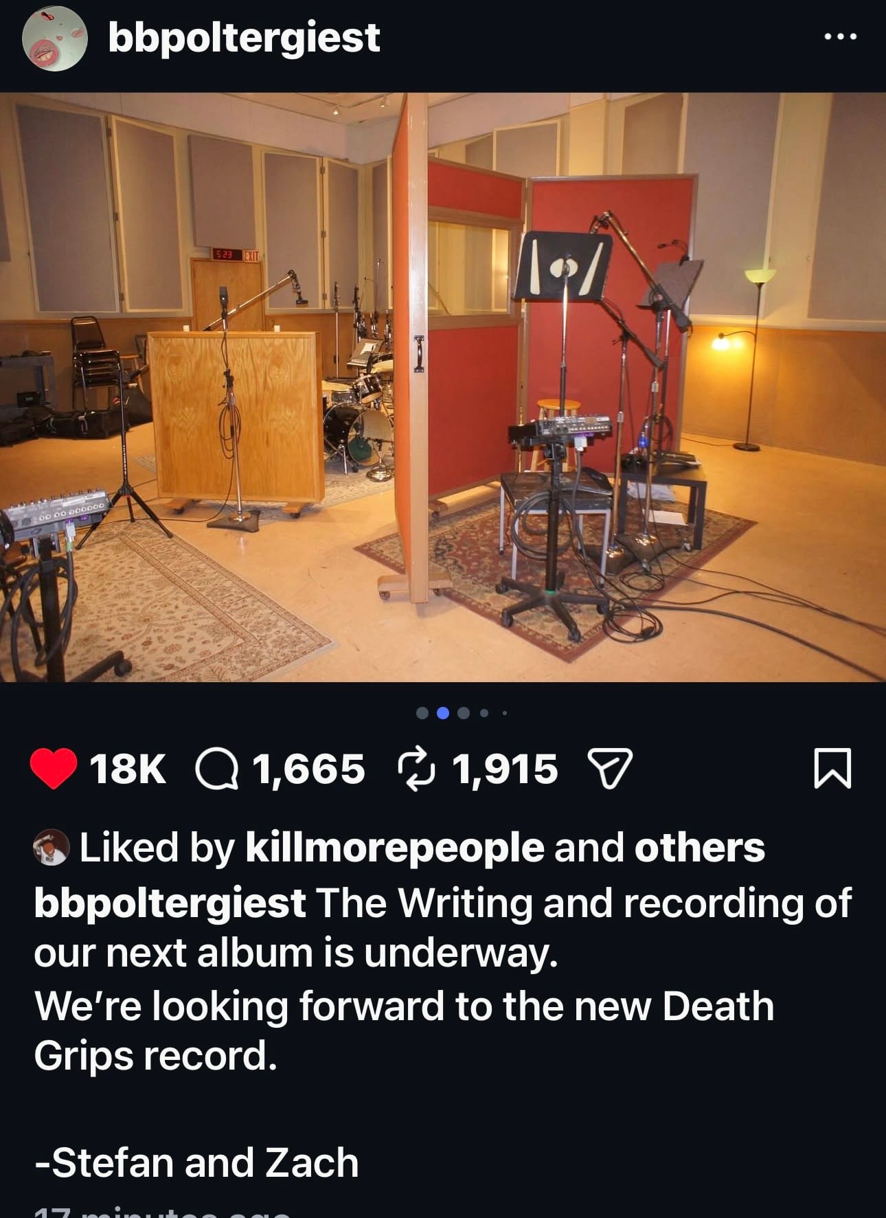 “The Writing [sic] and recording of our next album is underway. We're looking forward to the new Death Grips record.