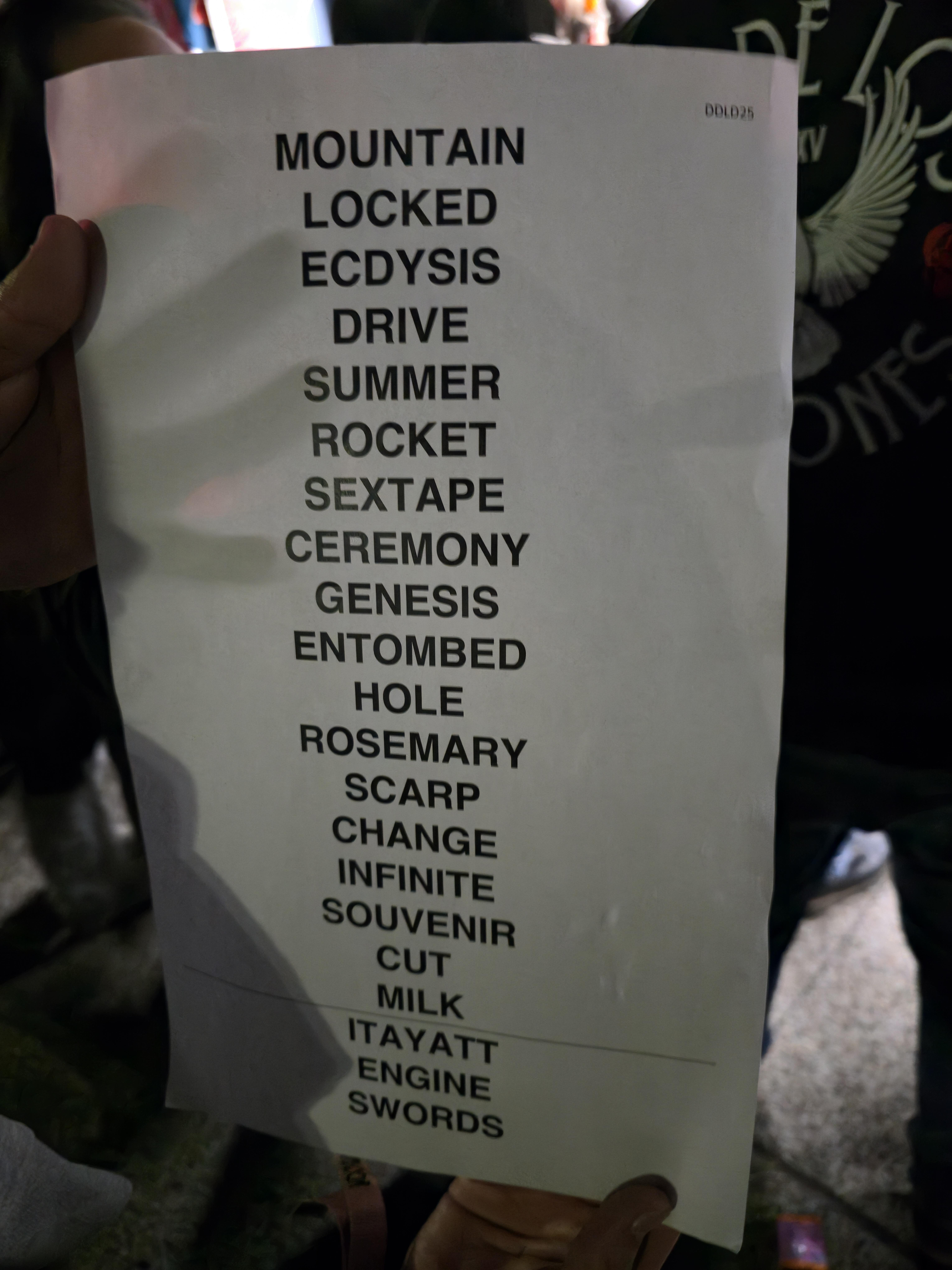 The first new addition, the swaggering "locked club," cropped up between opener "my mind is a mountain" and "ecdysis," completing the album's opening trifecta and leading into frequent opener "Be Quiet and Drive." After that powerful opening statement, the rest of the surprises were saved for the show's back half. "Street Carp," making its first appearance since 2019, switched things up following "Rosemary" and leading into the classic "Change" and new classic, "infinite source." Much like on the album, the exuberance of "infinite source" gave way to two new additions, the sprawling, sensuous "souvenir" and snarling, sinister gem "cut hands." The final surprise addition came as the encore opened with the stripped-down romance of "i think about you all the time," very much of a piece with the songs like "Sextape" and "Cherry Waves" whose TikTok virality helped spur the band's recent resurgence.
