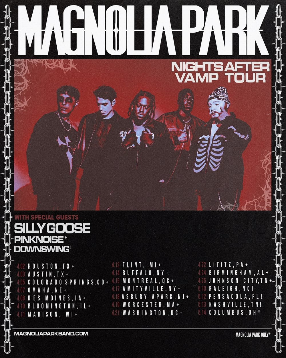 PINKNOISE will join Downswing in supporting Silly Goose and Magnolia Park on the latter's "Nights After Vamp" tour this spring. Foxx and Co. will be at the following dates of the tour: