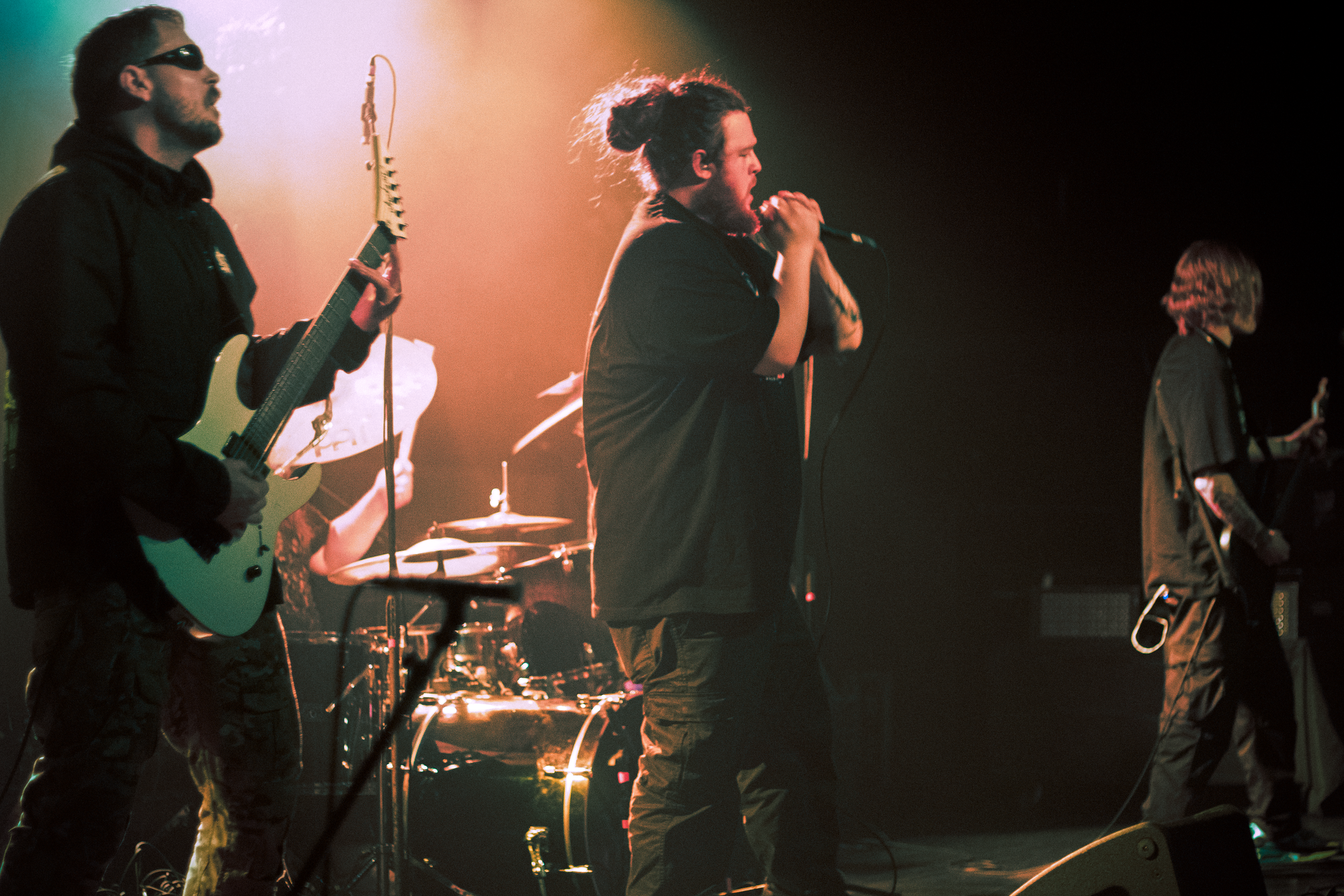 First up was Boltcutter, a slam outfit from Portland, founded in 2023. Hot off the heels of the release tour for their debut album Still Broke, the band has hopped on the Flesh Stays Together tour. I've never claimed to be slam's biggest fan, but despite that, and despite the band's short set, I'm pleased to say I had a good time. The band incorporates hip-hop sampling, similarly to acts like PeelingFlesh, who featured on a Boltcutter track in early 2024. In the ~15 minutes the band was onstage, they were able to effectively rile up the crowd to the point where I started getting bumped into all the way at the left side of the barricade, and that's pretty sick.