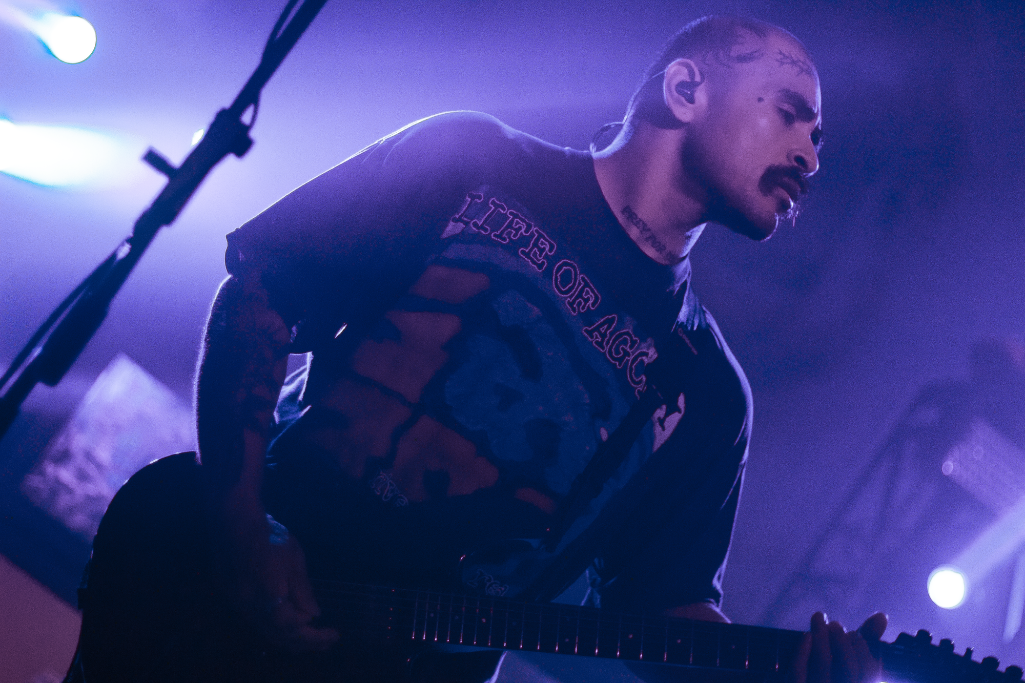 Those who know me know this one was really special. Static Dress is my favorite band of all time and this was my first time seeing them live. I was also aware I wasn't in for the standard Static Dress set. Vocalist Olli Appleyard had received a concussion during the band's Baltimore performance and would be unable to perform. Fortunately, the band was determined to keep playing shows, with backup vocalist and bassist George Holding taking up the role of lead vocals as well. I remember seeing a video of him doing a vocal cover of Bring Me The Horizon's "Dear Diary" some time ago, and so I had a rough idea that he would be able to hold his own. The band had a few surprises in store as well, as different guest vocalists would join the band throughout their 10 song set. "Courtney, Just Relax" saw Orthodox's Austin Evans join the band, and he'd remain through the "Death To The Overground" live outro, "face.", and "push rope". Despite Appleyard's absence, the band committed to keeping two new tracks on the setlist, the first one under the title "CDP" was sung by Adam Easterling, and following a performance of "such.a.shame" with the redux version's intro, they would launch into their second unreleased track, this time labelled "litrly lad". Following this would come the biggest surprise of the whole night, as the band would welcome Movements vocalist Patrick Miranda to the stage for a performance of "crying", to which I could only echo the statements of the person behind me: "What the fuck." capping off the set, the band was joined by Dying Wish's vocalist Emma Boster for a performance of "sweet.", and closed with their breakout single "clean." . Even as a 3-piece, even without Appleyard, the band managed to rock my fuckin' socks off and throw me for a total loop. A set to remember from the UK rockers and one I'll never forget. Real rock shit.
