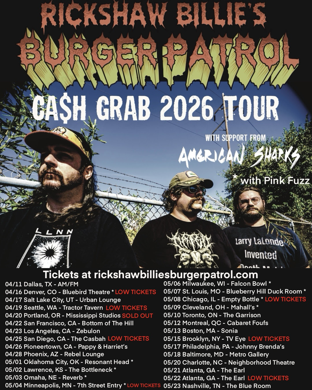 Austin doom-wop trio Rickshaw Billie's Burger Patrol are known for their big dumb riffs, so much so that they named their 2024 studio album as such. As the band are on their Cash Grab tour, they've dropped a new song en route to a new album. "Peaches" is a syrupy new single full of low-end goodness and plenty of kitsch.