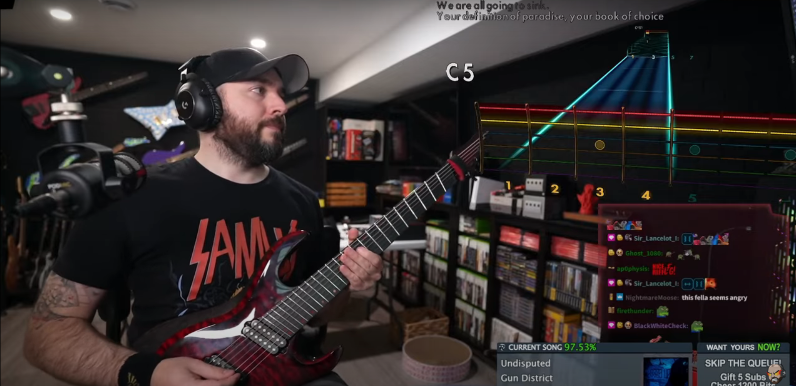Twitch streamer and guitar aficionado Chainbrain is known for bringing metal guitar to the masses with his streams of the music game Rocksmith. Thanks to mods and transcribers making charts for all manner of songs across all of the metal world, Chainbrain plays requests, meme songs, new music, and anything inbetween, wielding his custom seven-string Kiesel guitar and a pitch shifter to get around those pesky low tunings.