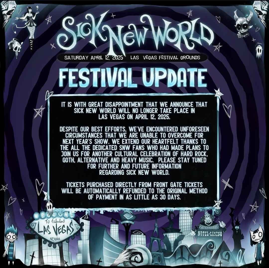 “I’m probably not supposed to talk about this, but it’s not happening. It’ll come out in the wash soon, but basically, [Sick New World] is not happening. We had a whole tour [...] built around that, which we can’t do now because financially it doesn’t make any sense, so yeah, that’s not happening.”