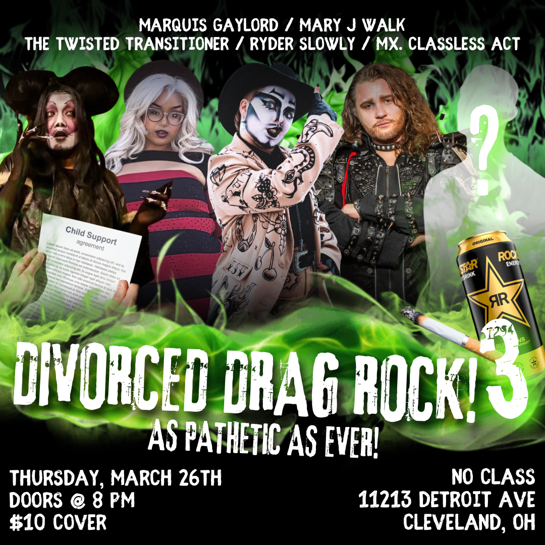 Now that this millennium is over a quarter century old, we can properly celebrate what has been dubbed by the internet to be "dad rock," which for better or worse encompasses a great deal of the nu world we love and hold dear. The Twisted Transitioner, Cleveland's transsexual rock star and nu metal enthusiast, is bringing the festivities back to the iconic No Class with Divorced Drag Rock 3 this spring.