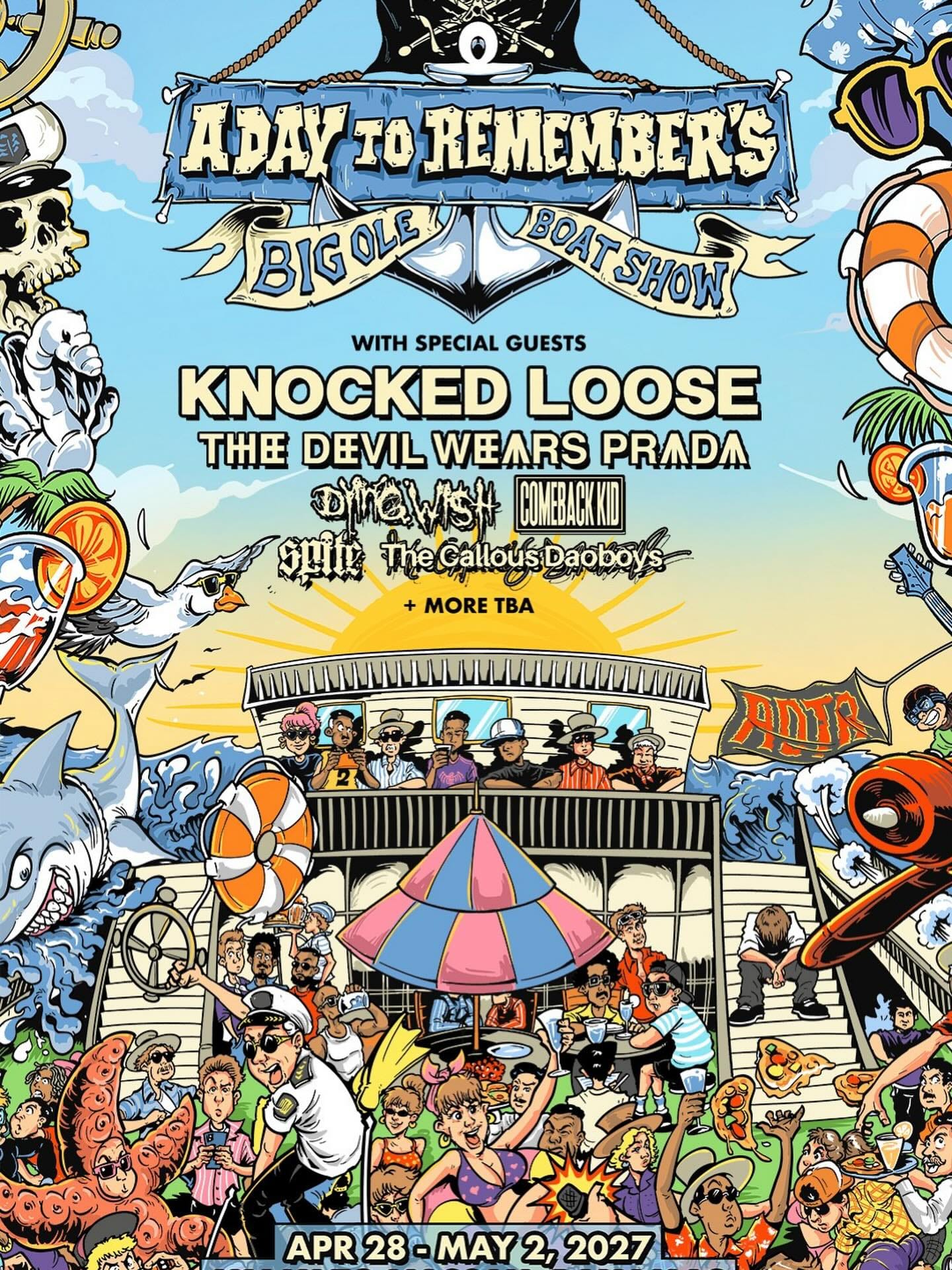 Spring is finally here and you know what that means: time to start planning for next year. Pop punk/metalcore crossover kings A Day to Remember have done exactly that with the announcement of their 2027 rock cruise—and it's loaded with Nu Metal Agenda favorites. A Day to Remember's Big Ole' Boat Show will feature performances from Knocked Loose, The Devil Wears Prada, Dying Wish, and The Callous Daoboys during a five-day cruise from Miami to Nassau and back again. More guests and performers to be announced soon.