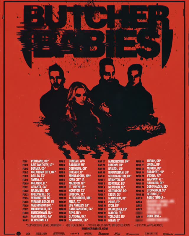 Butcher Babies, along with LYLVC and Eva Under Fire, can be seen on tour supporting self-proclaimed "butt rock billionaire" Jeris Johnson. Butcher Babies' spring slate will include a mix of support slots, solo shows, co-headlining shows with Infected Rain, and festival appearances. After that, the band will hit up Sonic Temple, Rock Fest, and Louder Than Life. Check out dates and the music video for "Lost In Your Touch" below.
